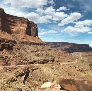 Our route from Moab included taking a left onto 279 off of 191. This route took us along the Colorado River. 279 turns into Potash Road. Potash Road can be described as slow and painful. It is a very rocky road that if it is maintained we didn't notice. The road is named for a Potash plant along the route that can be seen from Dead Horse Point State Park. The view out your windshield is special. the towering cliffs along the Colorado River and the mountains in the distance are spectacular. We recommend going to Dead Horse Point State Park to view the overlook first and see the drive and Potash facility from up above.