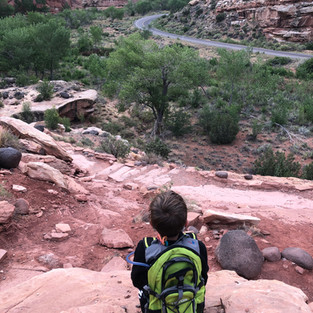 Hickman Bridge Trail is a nice beginner trail with some elevation and beautiful panoramic views. The trail is accessed East of the Fremont Areo on the North side of Highway 24. The trail is just under 2 miles round-trip with elevation of 400 feet. We hiked the trail at dawn and met up with one other family. In the morning it was quiet. We enjoyed the terrain, views, and being able to walk under and around Hickman Bridge. For more details on the trail we've developed a separate post which can be read here: https://www.campbrood.com/post/capitol-reef-hickman-bridge-trail